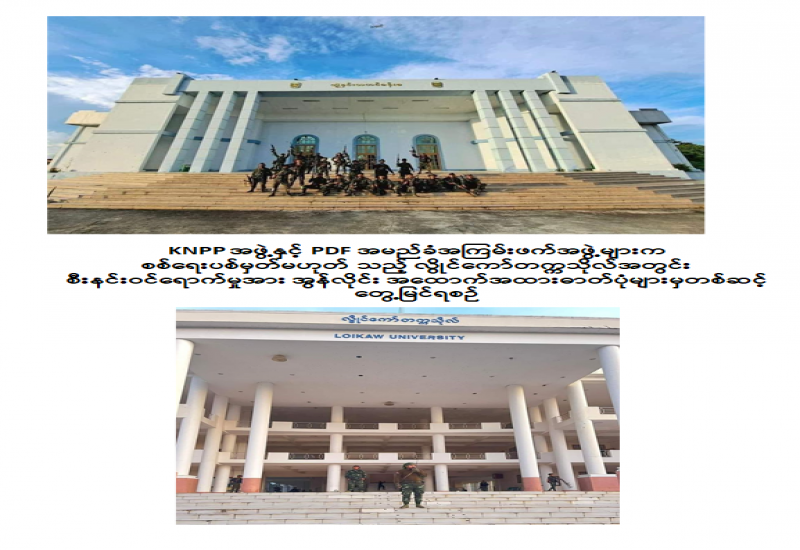 KNPP အဖွဲ့နှင့် PDF အမည်ခံအကြမ်းဖက်သောင်းကျန်းသူများသည် နိုဝင်ဘာ ၁၃ ရက်တွင် စစ်ရေးနှင့် သက်ဆိုင်သောပစ်မှတ်မဟုတ်သည့် ကယားပြည်နယ်၊ လွိုင်ကော်မြို့ရှိ လွိုင်ကော်တက္ကသိုလ်အား လက်နက်ကြီး၊ လက်နက်ငယ်များဖြင့် ရည်ရွယ်ချက်ရှိရှိ လာရောက်ပစ်ခတ်တိုက်ခိုက်ခဲ့ကြောင်းသိရှိရပြီး တက္ကသိုလ်တွင် တာဝန်ထမ်းဆောင်လျက်ရှိသည့် ပညာရေးဆိုင်ရာဝန်ထမ်းများနှင့် ပညာသင်ကြားလျက်ရှိသည့် ကျောင်းသား၊ ကျောင်းသူများအား အတင်းအဓမ္မ ဖမ်းဆီးခေါ်ဆောင်သွားခဲ့ကြောင်း သိရှိရသည်။