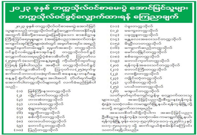 ၁။ ၂၀၂၄ ခုနှစ်တွင် ကျင်းပမည့် တက္ကသိုလ်ဝင်စာမေးပွဲနှင့် ပတ်သက်၍ ဝင်ရောက်ဖြေဆိုမည့် ကျောင်းသား ကျောင်းသူများ သိရှိနိုင်ရန် အောက်ပါအတိုင်း ကြေညာအပ်ပါသည်။