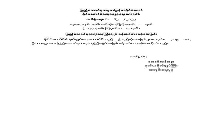 ပြည်ထောင်စုသမ္မတမြန်မာနိုင်ငံတော် နိုင်ငံတော်စီမံအုပ်ချုပ်ရေးကောင်စီ အမိန့်အမှတ်၊ ၆၄ / ၂၀၂၃ ၁၃၈၅ ခုနှစ်၊ ဒုတိယဝါဆိုလပြည့်ကျော် ၂ ရက် (၂၀၂၃ ခုနှစ်၊ ဩဂုတ်လ ၃ ရက်) ပြည်ထောင်စုစာရင်းစစ်ချုပ် ခန့်အပ်တာဝန်ပေးခြင်း