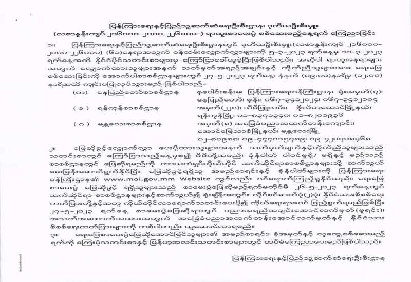 ပြန်ကြားရေးနှင့်ပြည်သူ့ဆက်ဆံရေးဦးစီးဌာန ဒုတိယဦးစီးမှူး (လစာနှုန်းကျပ် ၂၁၆၀၀၀-၂၀၀၀-၂၂၆၀၀၀) ရာထူးစာမေးပွဲ စစ်ဆေးမည့်နေ့ရက် ကြေညာခြင်း