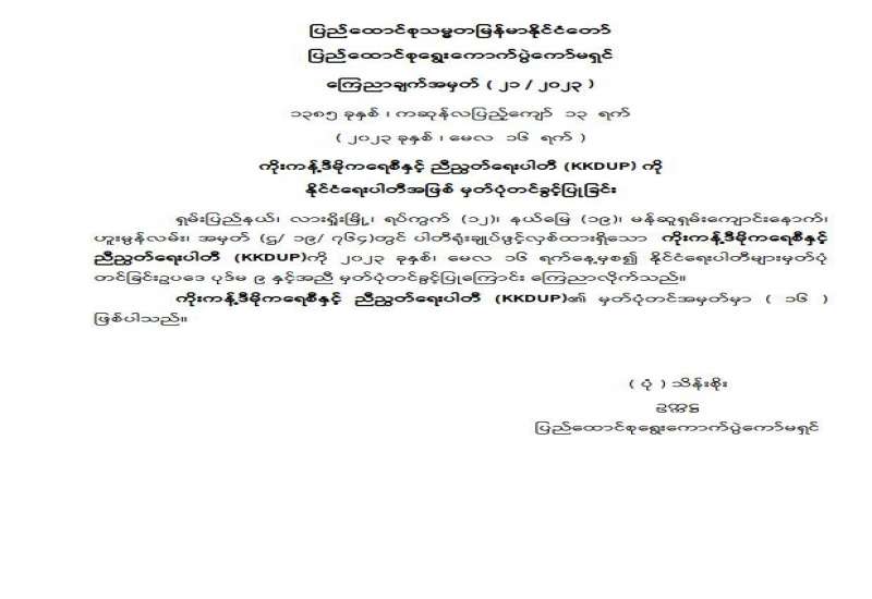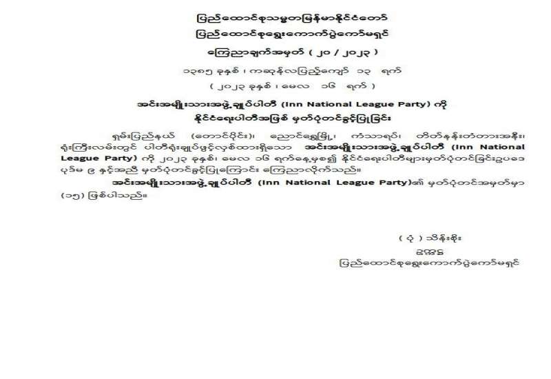 ပြည်ထောင်စုသမ္မတမြန်မာနိုင်ငံတော်၊ ပြည်ထောင်စုရွေးကောက်ပွဲကော်မရှင် ကြေညာချက်အမှတ် (၂၁ / ၂၀၂၃)