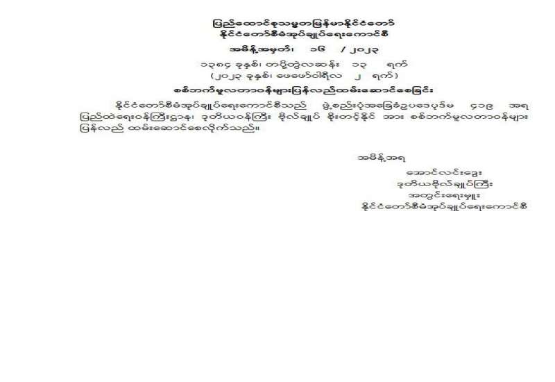 နိုင်ငံရေးပါတီများမှတ်ပုံတင်ခြင်း နည်းဥပဒေများကို ထုတ်ပြန်ကြေညာခြင်း