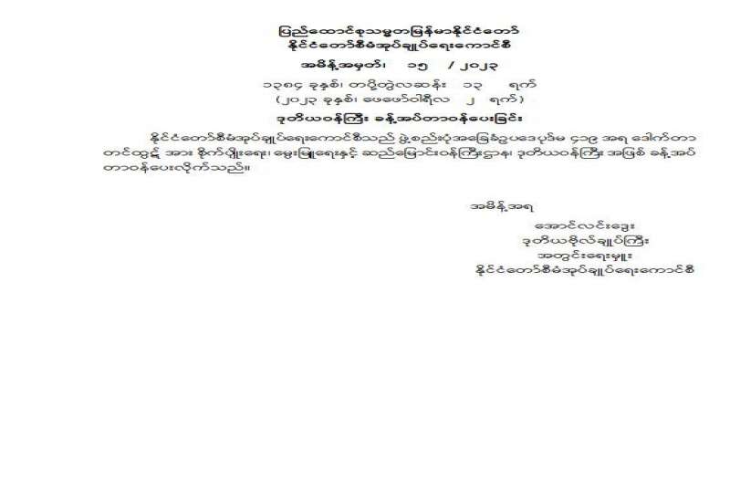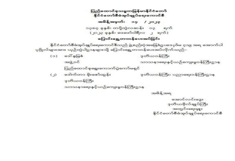 ဒုတိယဝန်ကြီး ခန့်အပ်တာဝန်ပေးခြင်း