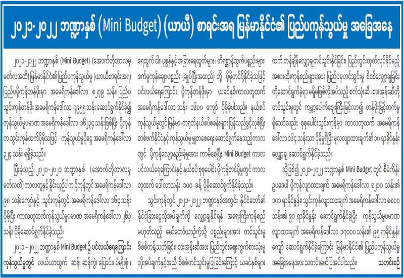 ၂၀၂၁-၂၀၂၂ ဘဏ္ဍာနှစ် (Mini Budget) (ယာယီ) စာရင်းအရ မြန်မာနိုင်ငံ၏ ပြည်ပြကုန်သွယ်မှု အခြေအနေ