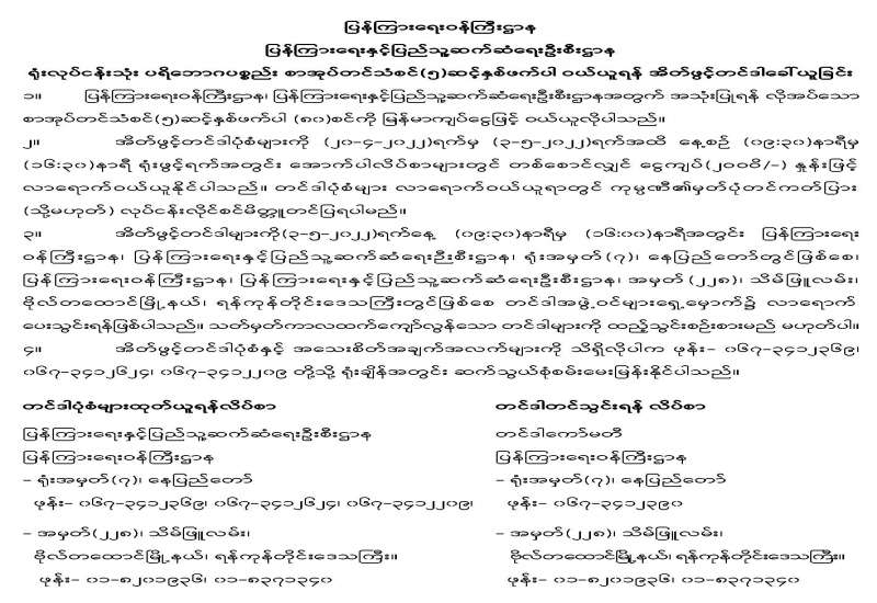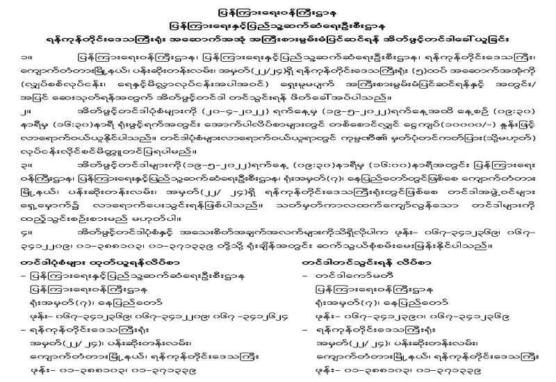 ရန်ကုန်တိုင်းဒေသကြီးရုံး အဆောက်အအုံ အကြီးစားမွမ်းမံပြင်ဆင်ရန် အိတ်ဖွင့်တင်ဒါခေါ်ယူခြင်း