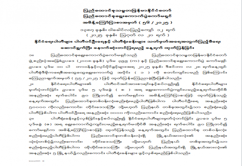 နိုင်ငံရေးပါတီများ ပါတီဝင်ဦးရေနှင့် ပါတီရုံးခန်းများ သတ်မှတ်အရေအတွက်ပြည့်မီရေး ဆောင်ရွက်ပြီး နောက်ဆုံးတင်ပြရမည့် နေ့ရက်ထုတ်ပြန်ခြင်း