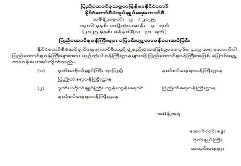 ကော်မရှင်အဖွဲ့ဝင် ခန့်အပ်တာဝန်ပေးခြင်း