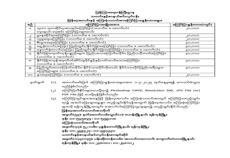 ပြန်ကြားရေးဝန်ကြီးဌာန သတင်းနှင့်စာနယ်ဇင်းလုပ်ငန်း မြန်မာ့အလင်းနှင့်ကြေးမုံသတင်းစာကြော်ငြာခနှုန်းထားများ