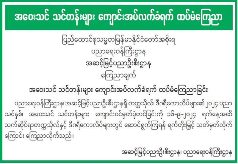 ၂၀၂၄ - ခုနှစ် တက္ကသိုလ်ဝင်စာမေးပွဲအောင်မြင်သူများအတွက် ဆေးတက္ကသိုလ်များ၊ သွားဘက်ဆိုင်ရာဆေးတက္ကသိုလ်များနှင့် ဆေးပညာနှီးနွှယ်တက္ကသိုလ်များသို့ ဝင်ခွင့်လျှောက်ထားနိုင်ကြောင်း ကြေညာချက်