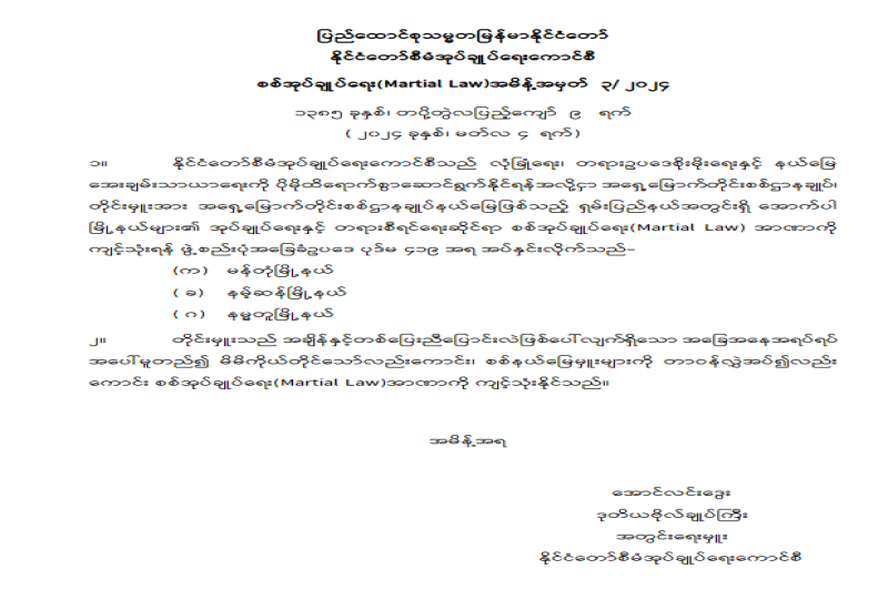 စစ်အုပ်ချုပ်ရေး(Martial Law)အမိန့်အမှတ် ၂ / ၂၀၂၄ ထုတ်ပြန်ကြေညာ
