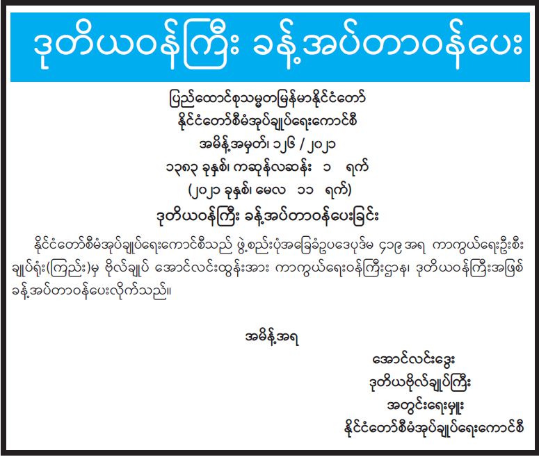 ဒုတိယဝန်ကြီး ခန့်အပ်တာဝန်ပေး