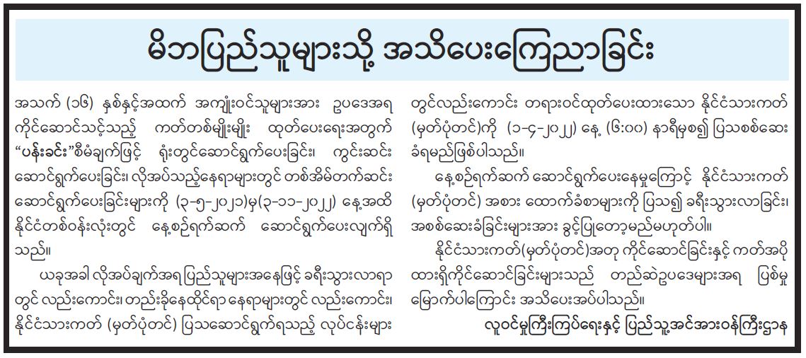 မိဘပြည်သူများသို့ အသိပေးကြေညာခြင်း