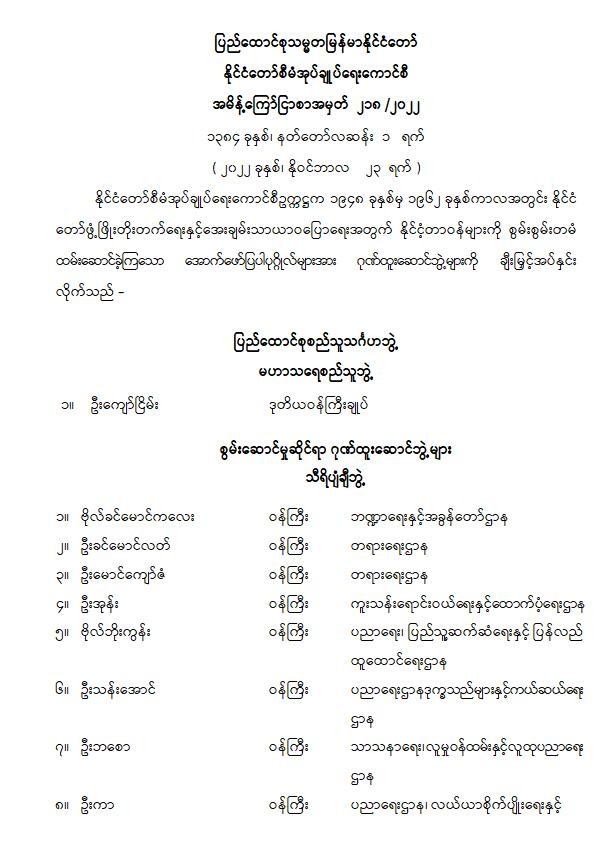 ပြည်ထောင်စုသမ္မတမြန်မာနိုင်ငံတော် နိုင်ငံတော်စီမံအုပ်ချုပ်ရေးကောင်စီ အမိန့်ကြော်ငြာစာအမှတ် ၂၁၈ /၂၀၂၂