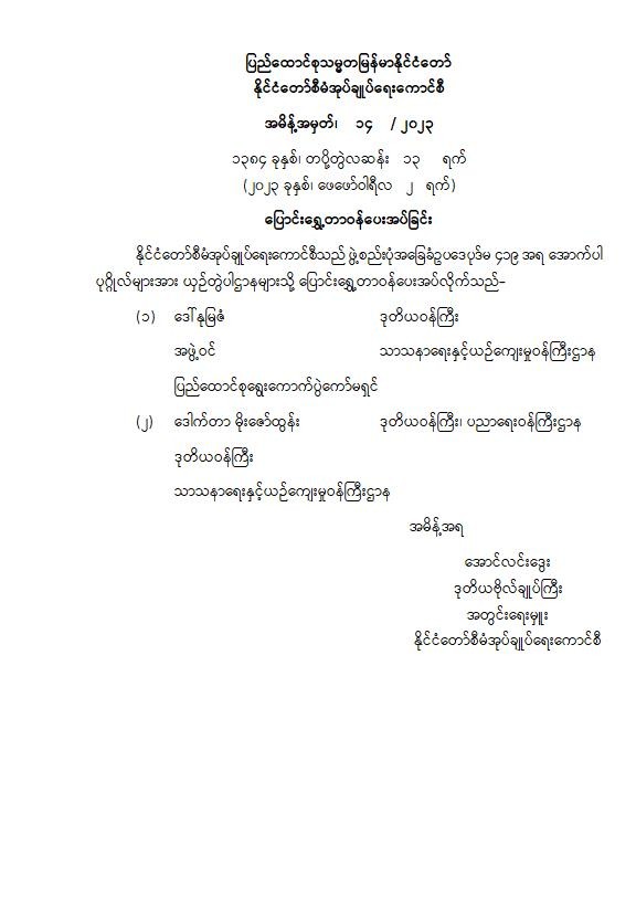 ပြောင်းရွှေ့တာဝန်ပေးအပ်ခြင်း