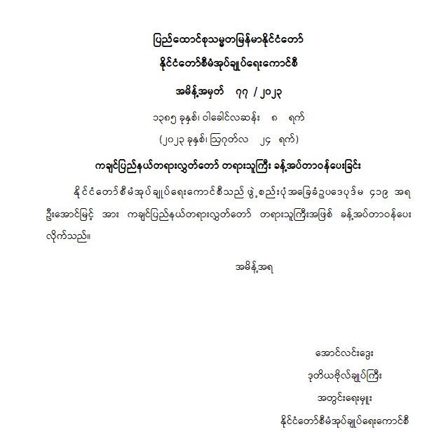 ကချင်ပြည်နယ်တရားလွှတ်တော် တရားသူကြီး ခန့်အပ်တာဝန်ပေးခြင်း