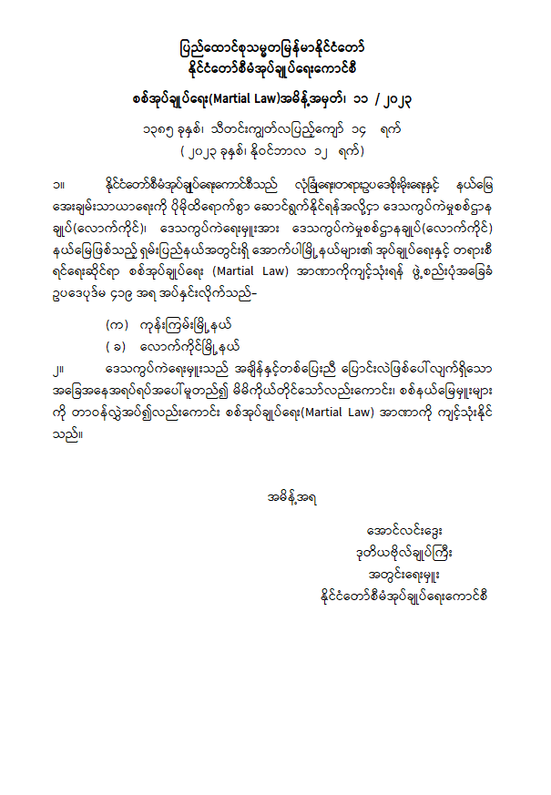 စစ်အုပ်ချုပ်ရေး (Martial Law) အမိန့်အမှတ် ၁၁ /၂၀၂၃