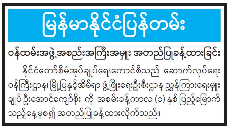 ဝန်ထမ်းအဖွဲ့အစည်းအကြီးအမှူး အတည်ပြုခန့်ထားခြင်း