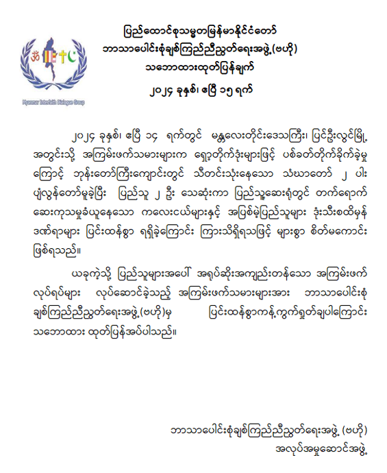 ပြည်ထောင်စုသမ္မတမြန်မာနိုင်ငံတော် ဘာသာပေါင်းစုံချစ်ကြည်ညီညွတ်ရေးအဖွဲ့ (ဗဟို) သဘောထားထုတ်ပြန်ချက် 04/16/2024