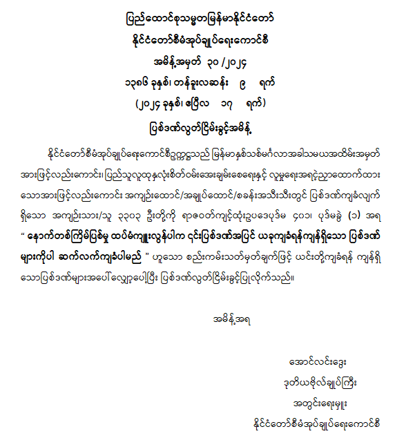 ပြည်ထောင်စုသမ္မတမြန်မာနိုင်ငံတော် နိုင်ငံတော်စီမံအုပ်ချုပ်ရေးကောင်စီအမိန့်အမှတ် ၃၀ /၂၀၂၄