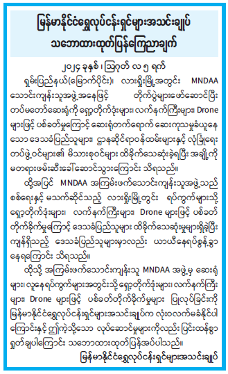 မြန်မာနိုင်ငံရွှေလုပ်ငန်းရှင်များအသင်းချုပ် သဘောထားထုတ်ပြန်ကြေညာချက်