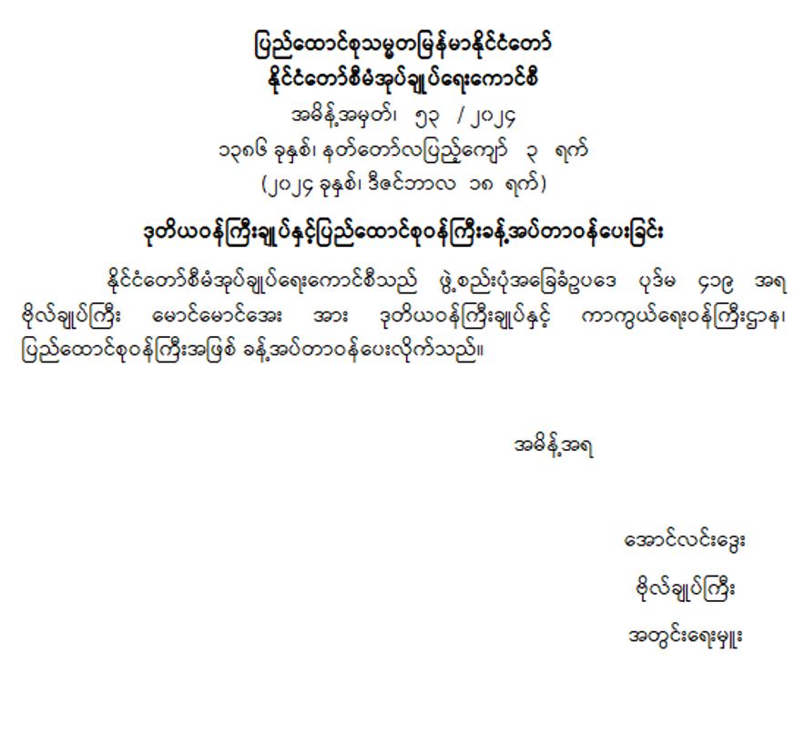 ဒုတိယဝန်ကြီးချုပ်နှင့် ပြည်ထောင်စုဝန်ကြီး ခန့်အပ်တာဝန်ပေးခြင်း