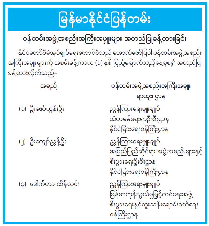 ဝန်ထမ်းအဖွဲ့အစည်းအကြီးအမှူးများ အတည်ပြုခန့်ထားခြင်း