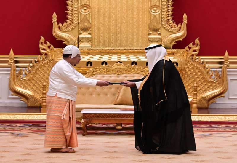 ပြည်ထောင်စုသမ္မတမြန်မာနိုင်ငံတော် ယာယီသမ္မတ နိုင်ငံတော်လုံခြုံရေးနှင့် အေးချမ်းသာယာရေးကော်မရှင်ဥက္ကဋ္ဌ ဗိုလ်ချုပ်မှူးကြီး မင်းအောင်လှိုင်ထံ မြန်မာနိုင်ငံဆိုင်ရာ ဆော်ဒီအာရေဗျနိုင်ငံ သံအမတ်ကြီး H.E. Mr. Maziad Mohammed M Al Howishan က ယနေ့နံနက် ၁၁ နာရီတွင် နေပြည်တော်ရှိ အမျိုးသားကာကွယ်ရေးနှင့်လုံခြုံရေးကောင်စီရုံး၊ သံတမန်ဆောင်ဧည့်ခန်းမ၌ ၎င်း၏သံအမတ်ခန့်အပ်လွှာကို ပေးအပ်သည်။