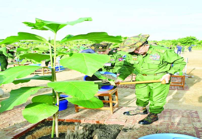 သဘာဝပတ်ဝန်းကျင်အား ထိန်းသိမ်းနိုင်စေရန်နှင့် ရာသီဥတုကို အထောက်အကူဖြစ်စေရန်၊ အရိပ်အာဝါသရရှိစေရန်၊ နိုင်ငံ့စီးပွားရေးအတွက် တစ်ဖက်တစ်လမ်းမှ အထောက်အကူဖြစ်စေရန်ရည်ရွယ်၍ ကာကွယ်ရေးဦးစီးချုပ်ရုံး (ကြည်း၊ ရေ၊ လေ) မိသားစုများနှင့် တိုင်းစစ်ဌာနချုပ်အသီးသီးတို့တွင် ၂၀၁၁ ခုနှစ်မှစ၍ နှစ်စဉ် မိုးရာသီတစ်အုပ်တစ်မ သစ်ပင်စိုက်ပျိုးပွဲများ ကျင်းပပြုလုပ်လျက်ရှိသည်။