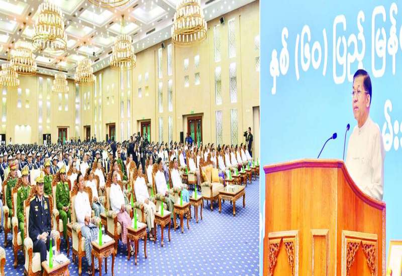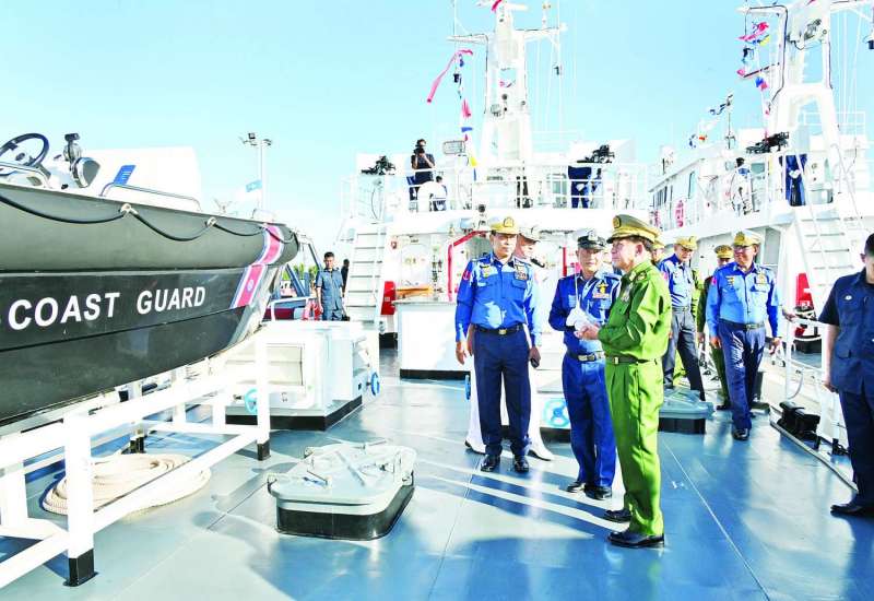 ပြည်ထောင်စုသမ္မတမြန်မာနိုင်ငံတော် ကမ်းခြေစောင့်တပ်ဖွဲ့ကွပ်ကဲမှုဌာနချုပ် တည်ထောင်ခြင်း(၃)နှစ်ပြည့် နှစ်ပတ်လည်နေ့အထိမ်းအမှတ်နှင့် ရေကြောင်းဆိုင်ရာအကျိုးစီးပွားများနှင့် မြန်မာ့ပင်လယ်ကမ်းရိုးတန်းလုံခြုံရေးအား ကာကွယ်စောင့်ရှောက်ရန်အတွက် ၄၈ မီတာ အမြန်သွားကင်းလှည့်ရေယာဉ်(၄)စီး တပ်တော်ဝင်ခြင်းအခမ်းအနားကို ယနေ့မွန်းလွဲပိုင်းတွင် အမှတ်(၃)ရေတပ်ဆိပ်ခံတံတား(သီလဝါ)၌ ကျင်းပပြုလုပ်ရာ နိုင်ငံတော်စီမံအုပ်ချုပ်ရေးကောင်စီဥက္ကဋ္ဌ တပ်မတော်ကာကွယ်ရေးဦးစီးချုပ် ဗိုလ်ချုပ်မှူးကြီးမင်းအောင်လှိုင် တက်ရောက်ဂုဏ်ပြုအမှာစကား ပြောကြားသည်။
