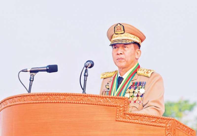 နိုင်ငံတော်စီမံအုပ်ချုပ်ရေးကောင်စီဥက္ကဋ္ဌ တပ်မတော်ကာကွယ်ရေးဦးစီးချုပ် ဗိုလ်ချုပ်မှူးကြီး မင်းအောင်လှိုင်နှင့်ဇနီး ဒေါ်ကြူကြူလှတို့က တည်ခင်းဧည့်ခံသည့် ၂၀၂၃ ခုနှစ်၊ (၇၈) နှစ်မြောက် တပ်မတော်နေ့အထိမ်းအမှတ်ဧည့်ခံပွဲနှင့် ဂုဏ်ပြုညစာစားပွဲ အခမ်းအနားကို ယနေ့ညပိုင်းတွင် နေပြည်တော်ရှိဇေယျာသီရိဗိမာန် ဥပစာရင်ပြင်၌ ကျင်းပပြုလုပ်သည်။