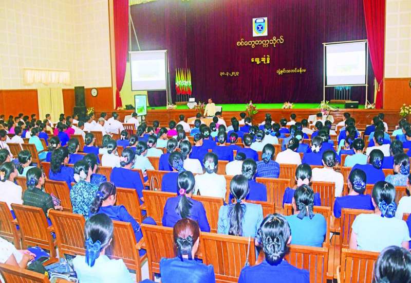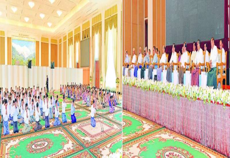 နိုင်ငံတော်စီမံအုပ်ချုပ်ရေးကောင်စီဥက္ကဋ္ဌ တပ်မတော်ကာကွယ်ရေးဦးစီးချုပ် ဗိုလ်ချုပ်မှူးကြီး သတိုးမဟာသရေစည်သူ သတိုးသီရိသုဓမ္မ မင်းအောင်လှိုင် တက်ရောက်မိန့်ခွန်းပြောကြား