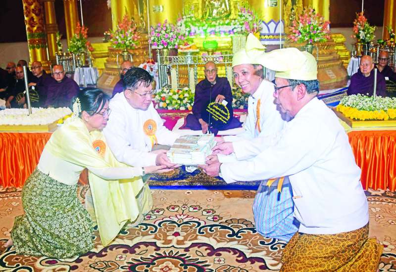 ရှမ်းပြည်နယ်(မြောက်ပိုင်း) လားရှိုးမြို့ရှိ သီရိမင်္ဂလာမန်ဆူရှမ်းကျောင်းတိုက်၌ နိုင်ငံတော်စီမံအုပ်ချုပ်ရေးကောင်စီဥက္ကဋ္ဌ နိုင်ငံတော်ဝန်ကြီးချုပ် ဗိုလ်ချုပ်မှူးကြီး မင်းအောင်လှိုင် အမှူးပြုသည့် စေတနာရှင်၊ အလှူရှင်များ စုပေါင်းလှူဒါန်းထားသည့် သီရိမင်္ဂလာဓမ္မရတနာ သုံးထပ်ကျောင်းဆောင်သစ်ဖွင့်ပွဲနှင့် ယင်းကျောင်းဆောင်တော်အထွတ်၌ တည်ထားပူဇော်အပ်သည့် စူဠာမုနိစေတီတော်မြတ်အား ရွှေထီးတော်၊ ငှက်မြတ်နားတော်၊ ရတနာစိန်ဖူးတော်တင်လှူပူဇော်ပွဲ မဟာမင်္ဂလာအခမ်းအနားကို ယနေ့နံနက်ပိုင်းတွင် အဆိုပါကျောင်းတိုက်၌ ကျင်းပပြုလုပ်ရာ သီရီမင်္ဂလာ မန်ဆူရှမ်းကျောင်းတိုက်ဆရာတော် အဂ္ဂမဟာဂန္ထဝါစကပဏ္ဍိတ အဂ္ဂမဟာကမ္မဌာနာစရိယ အဂ္ဂမဟာသဒ္ဓမ္မဇောတိကဓဇ ဒေါက်တာဘဒ္ဒန္တပုညနန္ဒ အမှူးပြုသည့် ဆရာတော်၊ သံဃာတော်များ ကြွရောက်ချီးမြှင့်တော်မူကြပြီး နိုင်ငံတော်စီမံအုပ်ချုပ်ရေးကောင်စီဥက္ကဋ္ဌ နိုင်ငံတော်ဝန်ကြီးချုပ် ဗိုလ်ချုပ်မှူးကြီး မင်းအောင်လှိုင်နှင့်ဇနီး ဒေါ်ကြူကြူလှ၊ မိသားစုဝင်များ၊ ခရီးစဉ်တွင် လိုက်ပါလာသည့် အဖွဲ့ဝင်များ၊ ဒေသခံပြည်သူများ တက်ရောက်ကြသည်။
