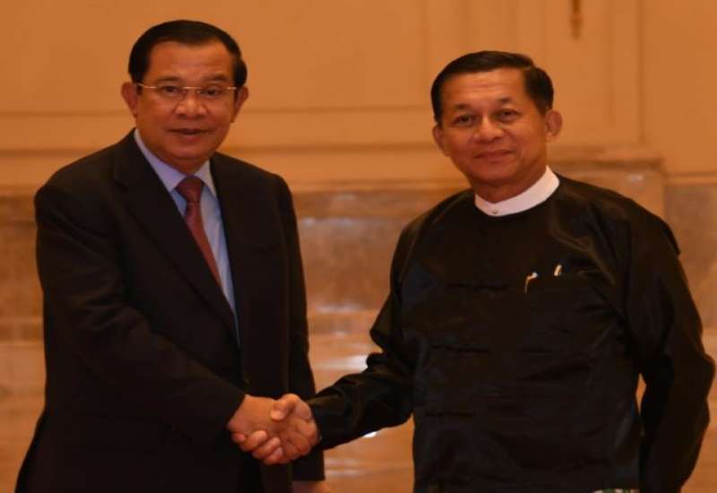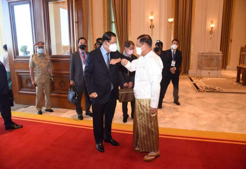 နိုင်ငံတော်စီမံအုပ်ချုပ်ရေးကောင်စီဥက္ကဋ္ဌ နိုင်ငံတော်ဝန်ကြီးချုပ် ဗိုလ်ချုပ်မှူးကြီး မင်းအောင်လှိုင်သည် မြန်မာနိုင်ငံသို့ အလုပ်သဘောခရီးစဉ်ရောက်ရှိနေသည့် ကမ္ဘောဒီးယား နိုင်ငံဝန်ကြီးချုပ် Samdech Akka Moha Sena Padei Techo HUN SEN အား ယနေ့မွန်းလွဲပိုင်းတွင် နေပြည်တော်ရှိ နိုင်ငံတော် စီမံအုပ်ချုပ်ရေးကောင်စီဥက္ကဋ္ဌရုံး သံတမန်ဆောင်ဧည့်ခန်းမ၌ လက်ခံတွေ့ဆုံသည်။