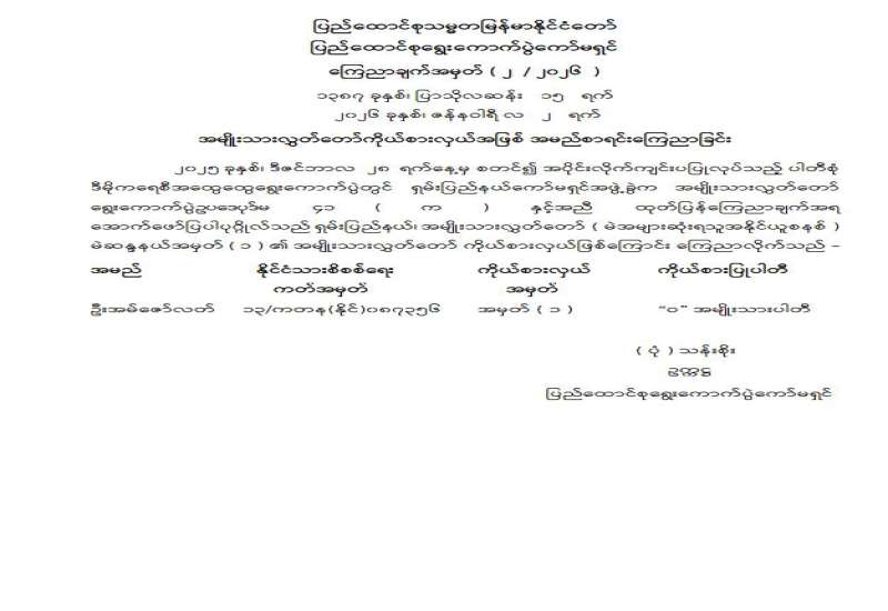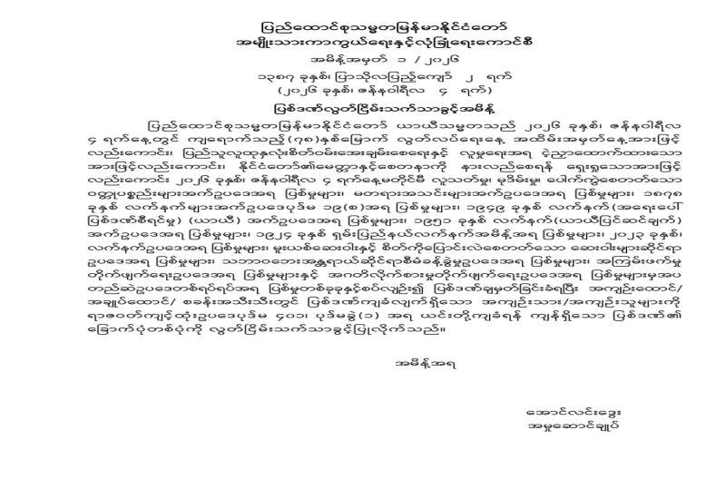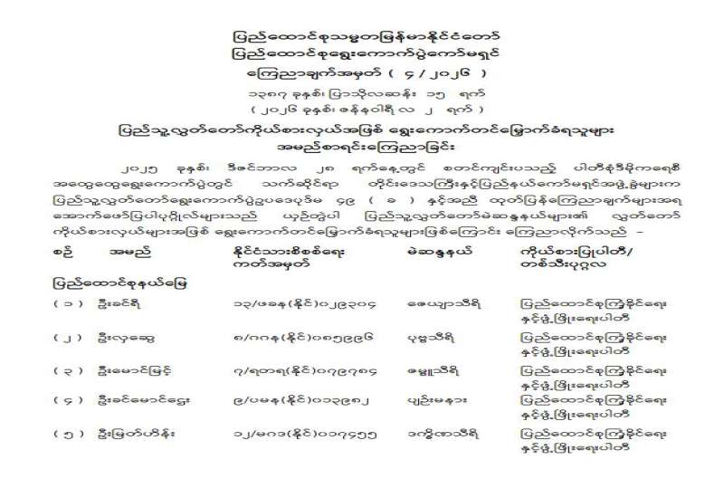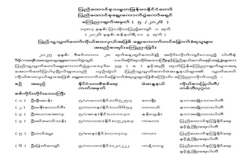 ပြည်သူ့လွှတ်တော်ကိုယ်စားလှယ်အဖြစ် ရွေးကောက်တင်မြှောက်ခံရသူများ အမည်စာရင်းကြေညာခြင်း
