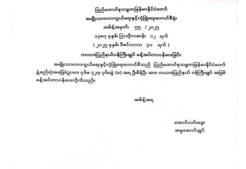 ကယားပြည်နယ်ဝန်ကြီးချုပ် ခန့်အပ်တာဝန်ပေးခြင်း