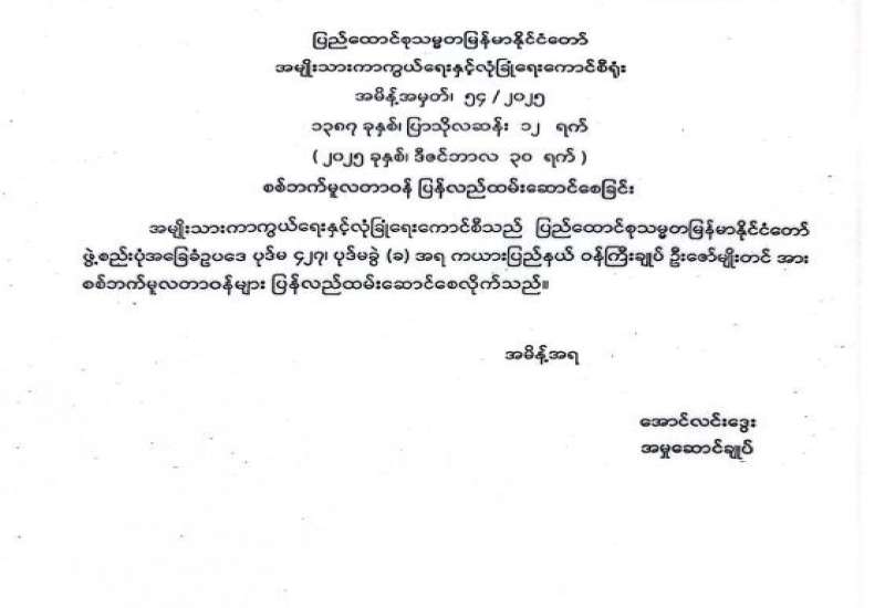 ဧရာဝတီတိုင်းဒေသကြီးအတွင်း ရွေးကောက်ပွဲများကျင်းပခြင်းမပြုမည့် နယ်မြေများစာရင်း ထုတ်ပြန်ကြေညာ