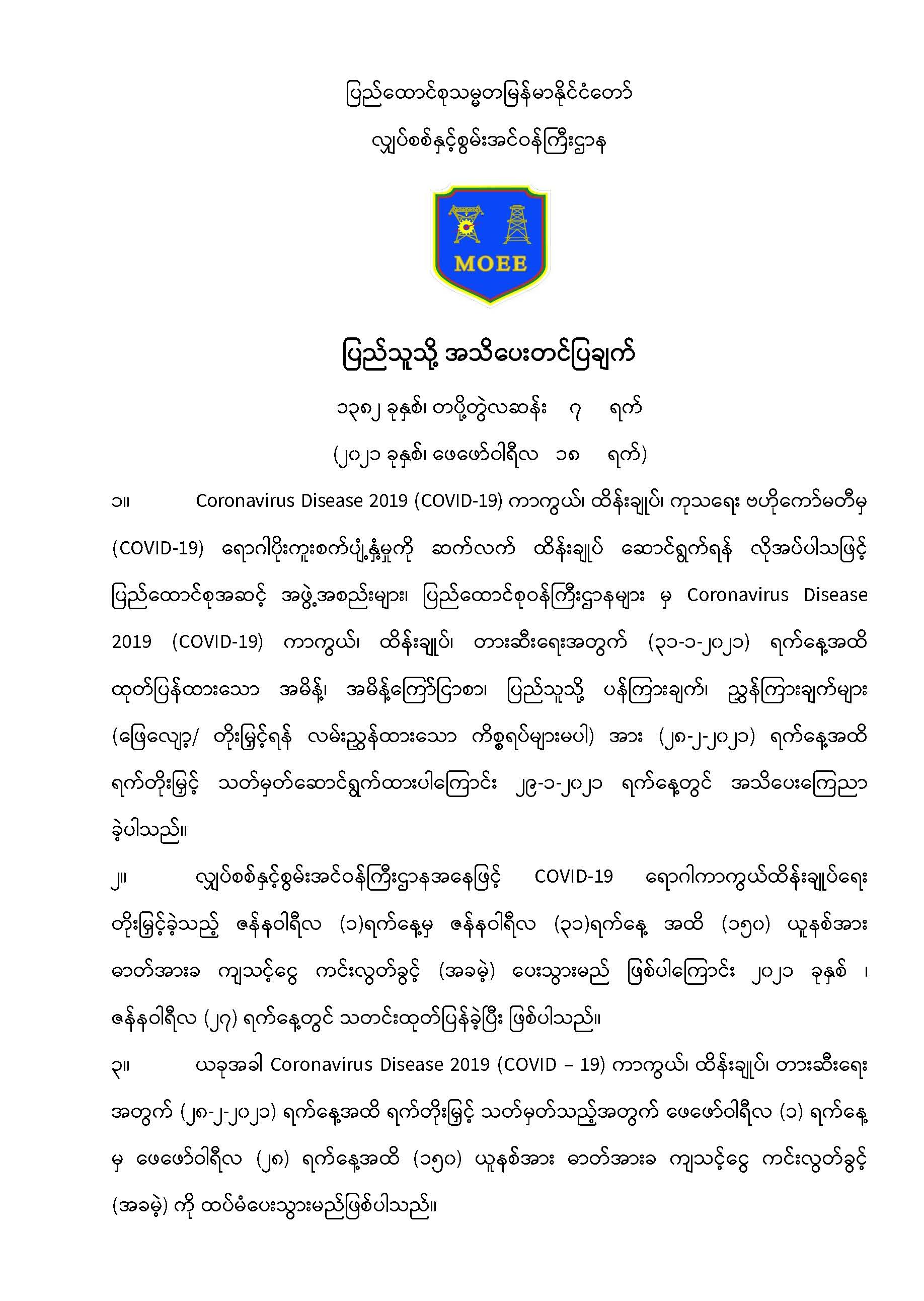 ဝန်ကြီးဌာန ကြေညာချက်များ