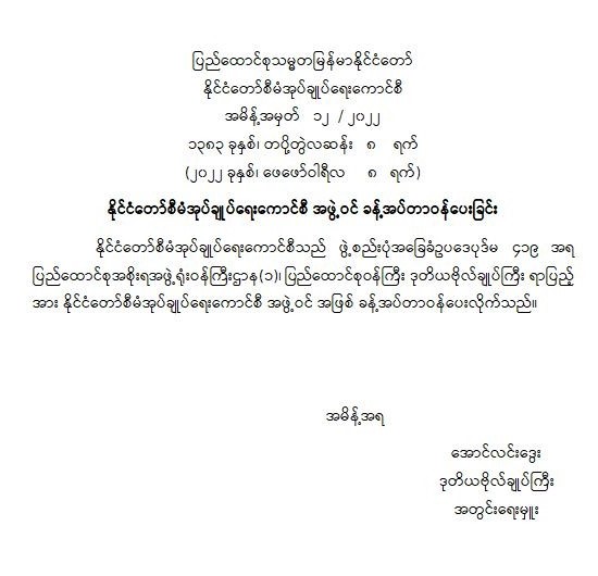 နိုင်ငံတော်စီမံအုပ်ချုပ်ရေးကောင်စီ အဖွဲ့ဝင် ခန့်အပ်တာဝန်ပေးခြင်း