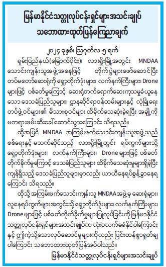 မြန်မာနိုင်ငံသတ္တုလုပ်ငန်းရှင်များအသင်းချုပ် သဘောထားထုတ်ပြန်ကြေညာချက်