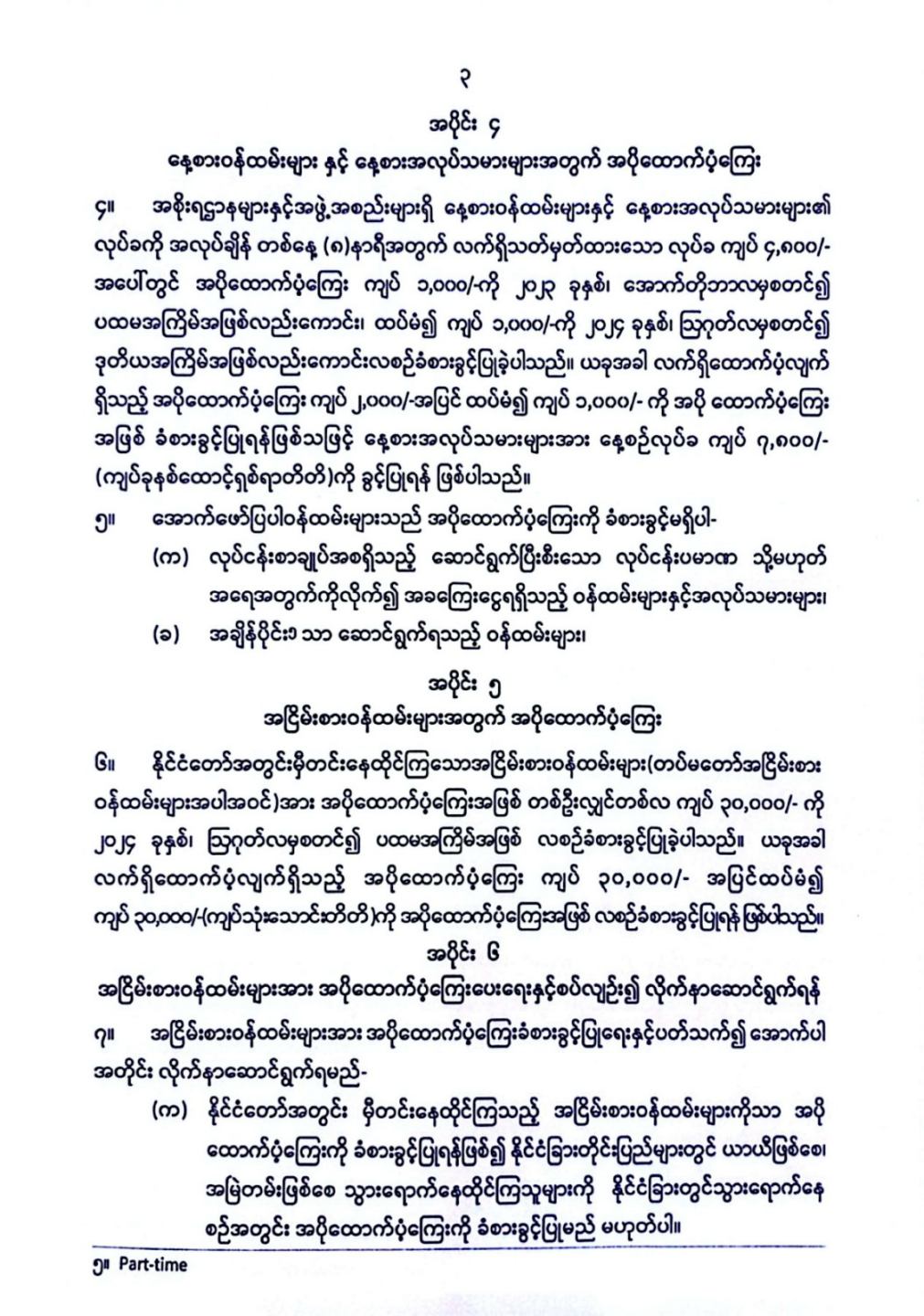 နိုင်ငံတော်အတွင်း နိုင်ငံတော်၏တာဝန်ကို ထမ်းဆောင်လျက်ရှိကြသည့် နိုင်ငံ့ဝန်ထမ်းများနှင့် အငြိမ်းစားဝန်ထမ်းများအတွက် အပိုထောက်ပံ့ကြေး ထပ်မံခံစားခွင့်ပြုခြင်း 09/30/2025