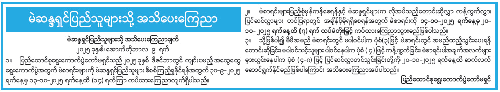 မဲဆန္ဒရှင် ပြည်သူများသို့ အသိပေးကြေညာ