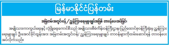 ဝန်ကြီးဌာန ကြေညာချက်များ