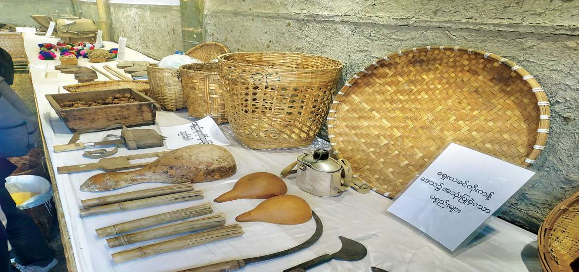 ဓနုတိုင်းရင်းသား တူရိယာပစ္စည်းများဖြစ်သည့် အိုးစည် ၊ မောင်း၊ လင်းကွင်း၊ ဝါးလက်ခုပ်၊ ဓားသိုင်းကရာတွင်သုံးသည့် ဓားများ၊ မှိုင်းကိုင် စက္ကူဖြင့် ပြုလုပ်ထားသည့် မီးပုံးများကိုလည်း ပြသထားသည်။
