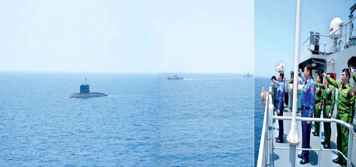 နိုင်ငံတော်၏အချုပ်အခြာအာဏာနှင့် ပိုင်နက်နယ်မြေကို လုံခြုံစွာကာကွယ် စောင့်ရှောက်နိုင်ရန်နဲ့ ကာကွယ်ရေးစွမ်းရည် ထက်မြက်မြင့်မားစေရန် အမြဲမပြတ် လေ့ကျင့်ဆောင်ရွက်လျက်ရှိရာ တပ်မတော် (ရေ) မှ ရေငုပ်သင်္ဘောစစ်ရေယာဉ် အပါအဝင် စစ်ရေယာဉ်များ၊ ရဟတ်ယာဉ်များနဲ့ စစ်နည်းဗျူဟအဆင့် ဝေဟင်းရေပြင်၊ ရေအောက် စစ်ဆင်မှုနဲ့ ပစ်ခတ်မှုလေ့ကျင့်ခန်း လေ့ကျင့်ခြင်း တွေကိုလည်း ဧပြီ၄ ရက်မှာ စတင်ဆောင်ရွက်နိုင်ခဲ့ ပါတယ်။ ဧပြီ ၁ဝ ရက်မှာ နိုင်ငံတော် စီမံအုပ်ချုပ်ရေးကောင်စီဥက္ကဋ္ဌ တပ်မတော်ကာကွယ်ရေးဦးစီးချုပ် ကိုယ်တိုင်လေ့ကျင့်မှုတွေကို သွားရောက်ကြည့်ရှု ခဲ့ပါတယ်။ နိုင်ငံတော်ကာကွယ်ရေးကို တာဝန်ယူထားရတဲ့ တပ်မတော်အတွက် မြန်မာ့ရေပိုင်နက်က အလွန်ကျယ်ပြန့်ပြီး ကမ်းရိုးတန်းအရှည် ရေမိုင် ၃၀၀ ခန့်ရှည်လျားတဲ့ အတွက် ယခုလို တပ်မတော် (ရေ)ရဲ့ လေ့ကျင့်မှုသည် အလွန်အရေးကြီးပါတယ်။ ရခိုင်ပြည်နယ်အတွင်းက တိုက်ပွဲရှောင်စခန်းများမှ နေရပ်စွန့်ခွာသူတွေကို ထောက်ပံ့ပေးအပ်ခဲ့တဲ့အပြင် အစီအမံများ၊ အသက်မွေးဝမ်းကျောင်းလုပ်ငန်းများအတွက် ထောက်ပံ့သင်ကြားမှုများ ပြုလုပ်ပေးသွား ဖို့ရှိတာ ကိုလည်း သိရှိရပါတယ်။ ဧပြီ ၁ဝ ရက်က ပြည်တွင်းနေရပ်စွန့်ခွာသူများ ပြန်လည်နေရာ ချထား ရေးနှင့် ယာယီခိုလှုံရာစခန်းများ ပိတ်သိမ်းရေးဆိုင်ရာ အမျိုးသားအဆင့်ကော်မတီဥက္ကဋ္ဌ နယ်စပ် ရေးရာဝန်ကြီးဌာန ပြည်ထောင်စုဝန်ကြီး ကရခိုင်ပြည်နယ်အတွင်း တိုက်ပွဲရှောင်စခန်းများမှ နေရပ် စွန့်ခွာသူများအား ထောက်ပံ့ခြင်း အခမ်းအနားမှာ အဲဒီအစီအမံတွေကို ထည့်သွင်းပြောကြား ခဲ့တာဖြစ်ပါတယ်။ ထို့အတူ စစ်တွေ၊ အမ်း၊ ကျောက်ဖြူနဲ့ မြောက်ဦးမြို့နယ်တို့ကို သွားရောက် ပြီး တိုက်ပွဲရှောင်စခန်းမှ တာဝန်ရှိသူများ၊ ဒေသခံ များနဲ့ တွေ့ဆုံညှိနှိုင်း ထောက်ပံ့ပေးခဲ့ပါတယ်။