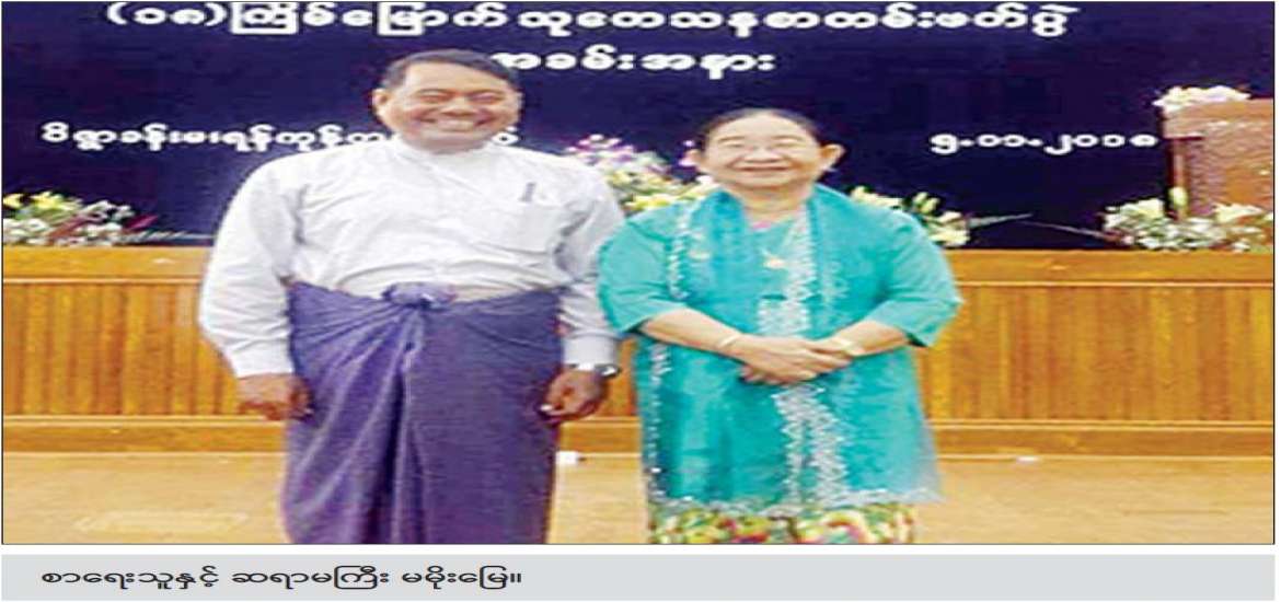 စာတမ်းဖတ်တဲ့နေ့မှာတော့ ဆရာမကြီး မမိုးမြေ၊ ဆရာကြီးမောင်ခင်မင် (ဓနုဖြူ)တို့ကို ကန်တော့ခွင့်ရလို့ ဝမ်းသာပီတိဖြစ်ရပါ တယ်။ ကိုယ်တို့ရဲ့ ငယ်ကတည်းက ဆရာမကြီးဖြစ်ခဲ့ဖူးတဲ့ ဆရာမကြီး ဒေါ်ရှိမ်းပိုင်ကိုလည်း ကန်တော့ခွင့်ရခဲ့တာမို့ ကြည်နူးမဆုံး တပြုံးပြုံးပေါ့။ ကိုယ် သုတေသနလုပ်ထားတဲ့၊ ကိုယ်ဖတ်ချင်လွန်းတဲ့ စာတမ်းကိုလည်း ဖတ်ခွင့်ရခဲ့တယ်။ လိုအပ်တာလေး တွေကို ဆရာကြီး ဆရာမကြီးတွေက စေတနအား၊ ပညာအားတွေနဲ့ ပြင်ပေးကြတယ်ပေါ့။ ဒါတင်မကသေးပဲ ဆရာကြီး ဆရာမကြီးတွေကိုပါ ကန်တော့ခွင့်ရခဲ့တာမို့ အပြန်လမ်းမှာ ကြည်နူးမှု အပြုံးပန်းတွေက တားမနိုင် ဆီးမရပေါ့။