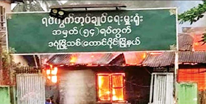 အလားတူ ယနေ့နံနက် ၅ နာရီ ၄၀ မိနစ်အချိန်တွင် ရန်ကုန်တိုင်းဒေသကြီး၊ ဒဂုံမြို့သစ်(တောင်ပိုင်း)မြို့နယ်၊ အမှတ်(၅၄)ရပ်ကွက်ရှိ ရပ်ကွက်စီမံအုပ်ချုပ်ရေးအဖွဲ့ရုံးအတွင်း၌ အဆိုပါရပ်ကွက် ရာအိမ်မှူးဖြစ်သူ ဦးလှမျိုးအောင် (၄၃)နှစ် (ဘ) ဦးကျားကြီး ရှိနေစဉ် ဆူပူအကြမ်းဖက်သူများ ရုံးအတွင်း ရောက်ရှိလာပြီး ၎င်းအား ဝိုင်းဝန်းရိုက်နှက်၍ ရုံးအား မီးပုလင်းများ ပစ်ဖောက်ခွဲကာ မီးရှို့ခဲ့၍ မီးလောင်နေကြောင်း သတင်းအရ လုံခြုံရေး တပ်ဖွဲ့ဝင်များနှင့် မီးသတ်တပ်ဖွဲ့ဝင်များက သွားရောက်မီးငြှိမ်းသတ်ခဲ့ရာ နံနက် ၆ နာရီအချိန်တွင် မီးငြိမ်းသွားခဲ့ပြီး မီးလောင်မှုကြောင့် အဆိုပါရုံးနှင့် ရုံးအတွင်းရှိ ပရိဘောဂများ မီးလောင် ပျက်စီးဆုံးရှုံးခဲ့ပြီး ဦးလှမျိုးအောင်တွင် ထိခိုက်ဒဏ်ရာများ ရရှိခဲ့သဖြင့် ဆေးဝါးကုသမှု ခံယူနိုင်ရေး မြောက်ဥက္ကလာပမြို့နယ်ရှိ ဆေးခန်းသို့ ပို့ဆောင်ထားရှိခဲ့ကြောင်း သိရသည်။
