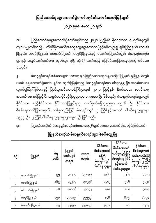 ပြည်ထောင်စုရွေးကောက်ပွဲကော်မရှင်၏သတင်းထုတ်ပြန်ချက် ၂၀၂၁ ခုနှစ်၊ မေလ ၂၇ ရက်