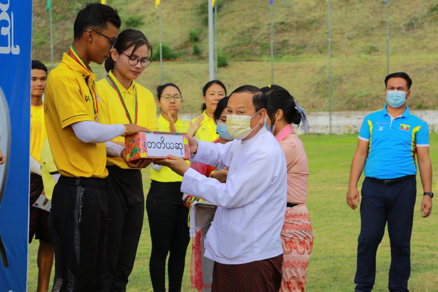 အခမ်းအနားသို့ နိုင်ငံတော်စီမံအုပ်ချုပ်ရေးကောင်စီအဖွဲ့ဝင် Jeng Phang နော်တောင်၊ ကျန်းမာရေးနှင့် အားကစားဝန်ကြီးဌာန ဒုတိယဝန်ကြီး ဦးမျိုးလှိုင်၊ အားကစားနှင့် ကာယ ပညာဦးစီးဌာန ခေတ္တညွှန်ကြားရေးမှူးချုပ် ဦးထွန်းမြင့်ဦး၊ မြန်မာနိုင်ငံ မြားပစ် အဖွဲ့ချုပ် ဥက္ကဋ္ဌ ဦးဇေသီဟ၊ ဒုတိယညွှန်ကြားရေးမှူးချုပ်များ၊ ညွှန်ကြားရေးမှူးများ၊ မြားပစ်အဖွဲ့ချုပ်မှ တာဝန်ရှိသူများ တက်ရောက်ကြသည်။
