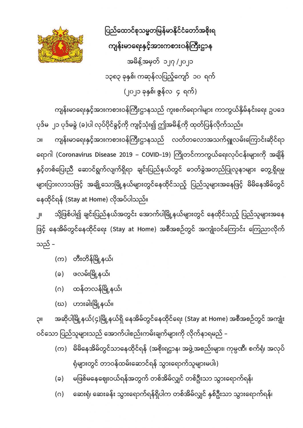 ကျန်းမာရေးနှင့်အားကစား၀န်ကြီးဌာနအမိန့်အမှတ် ၁၂၇ /၂၀၂၁