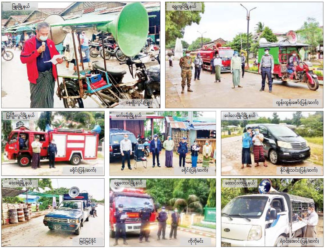 နိုင်ငံတစ်ဝန်း၌ ကိုဗစ်-၁၉ ရောဂါကာကွယ်ရေးညွှန်ကြားချက်များ ပြည်သူများ သိရှိနိုင်ရေး သတိပေးနှိုးဆော်မှုပုံရိပ်များ